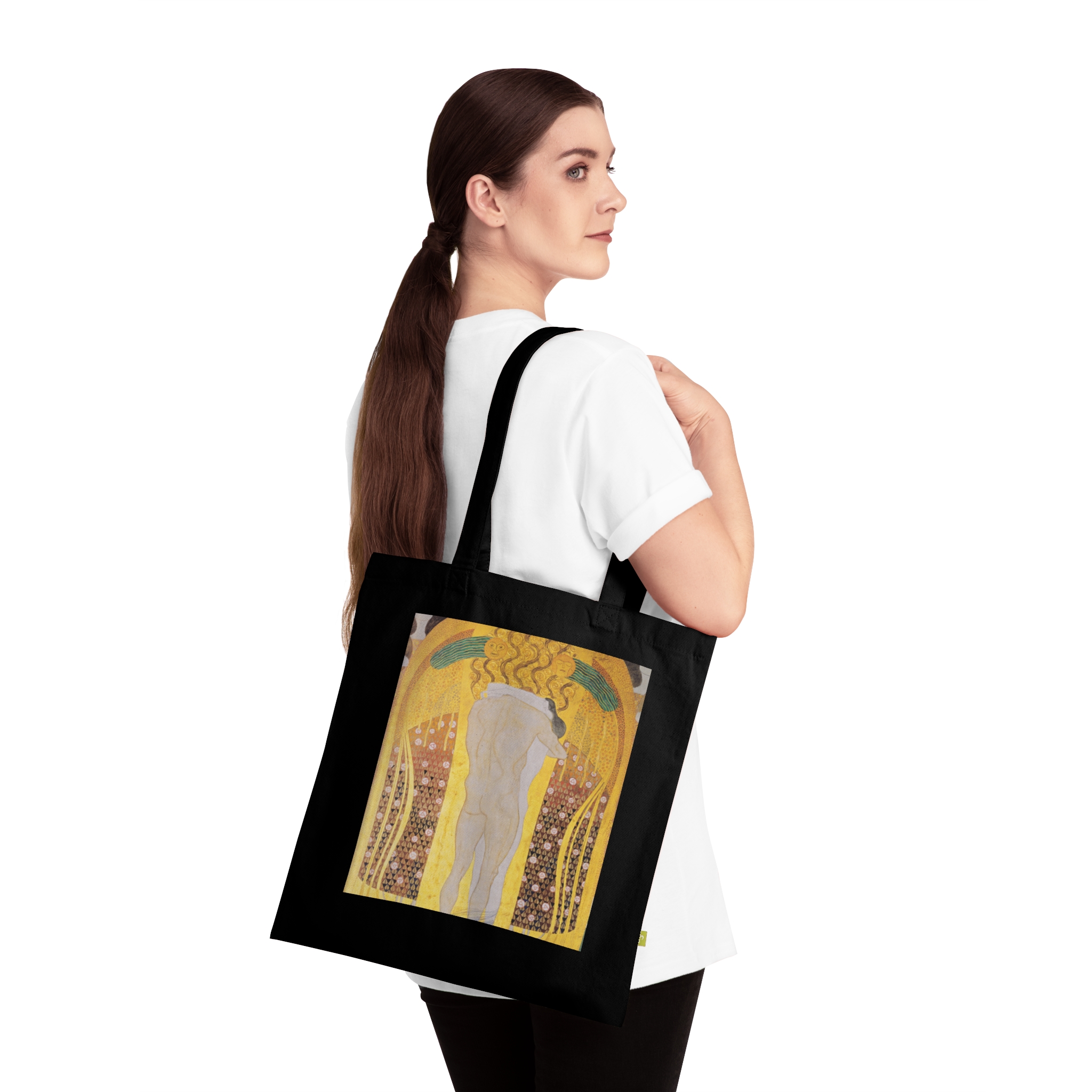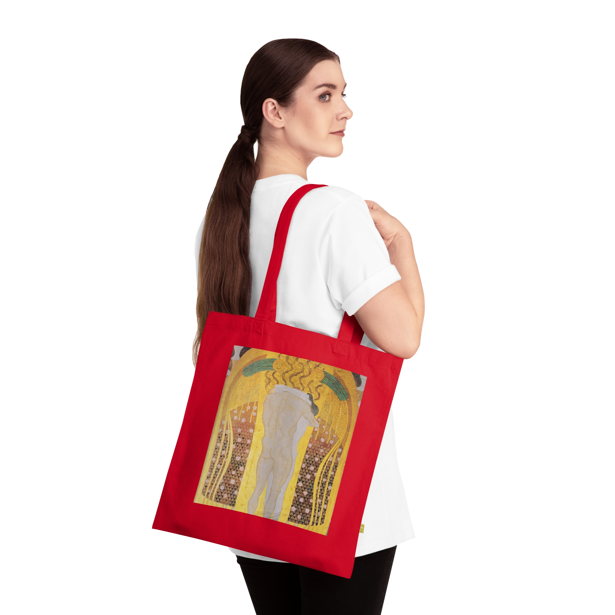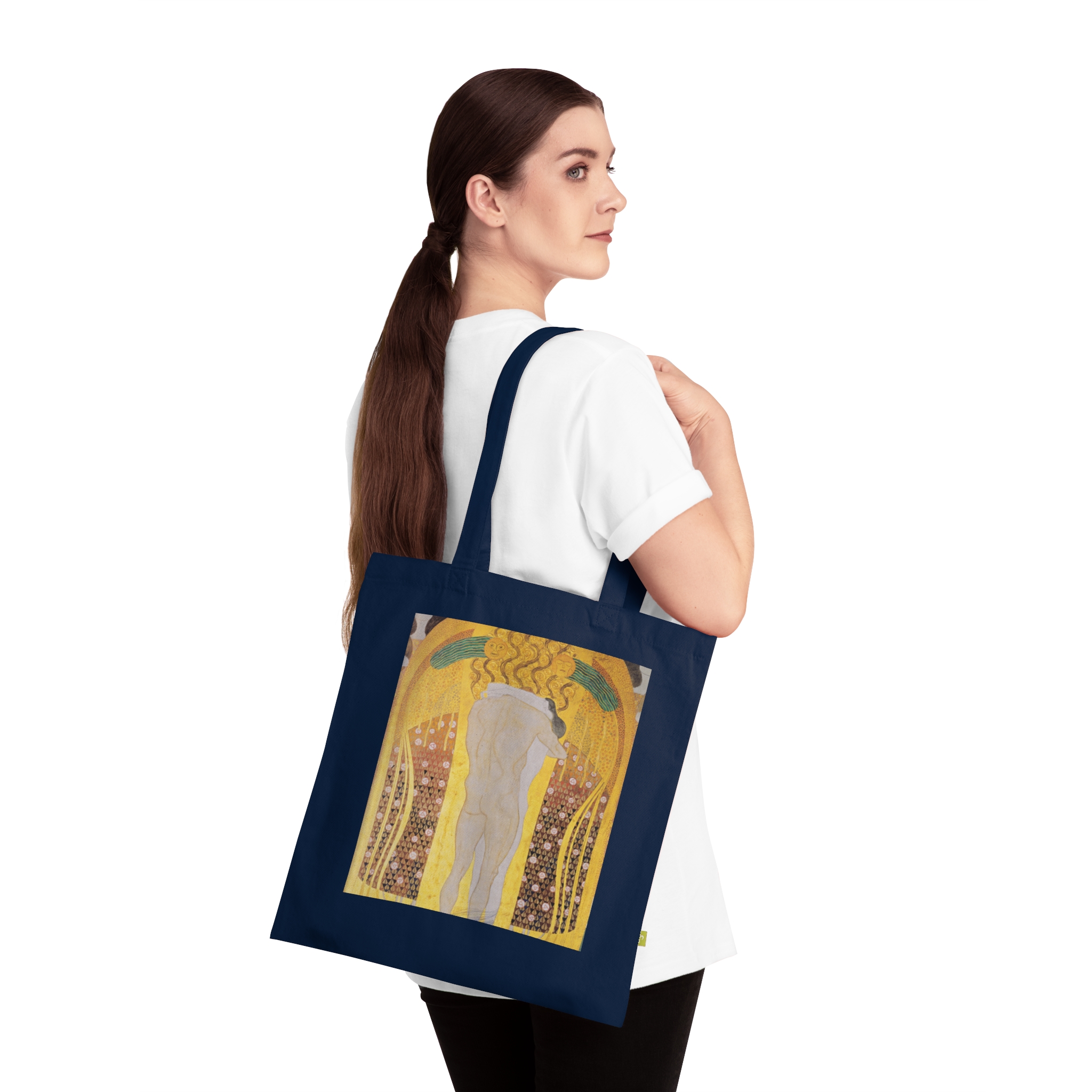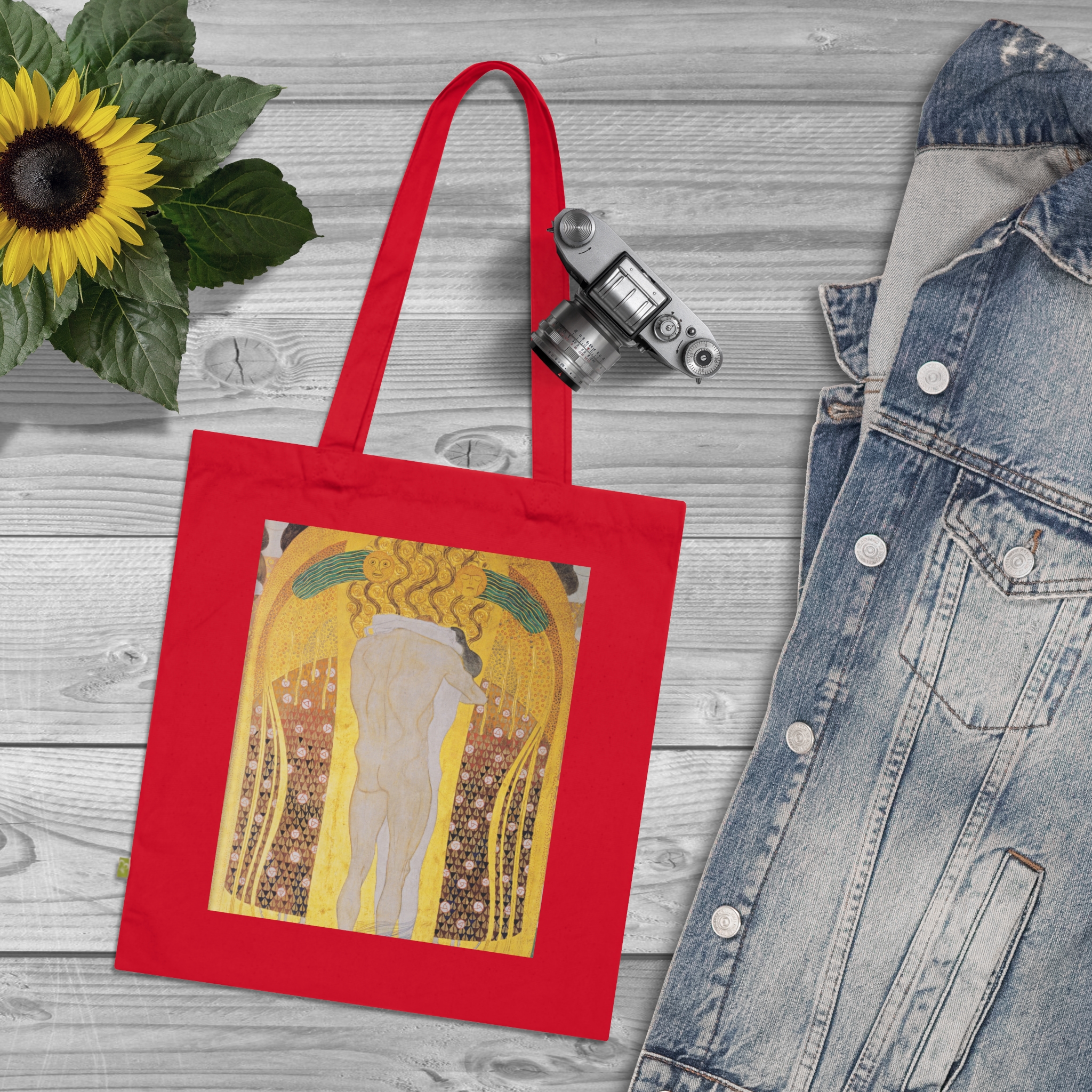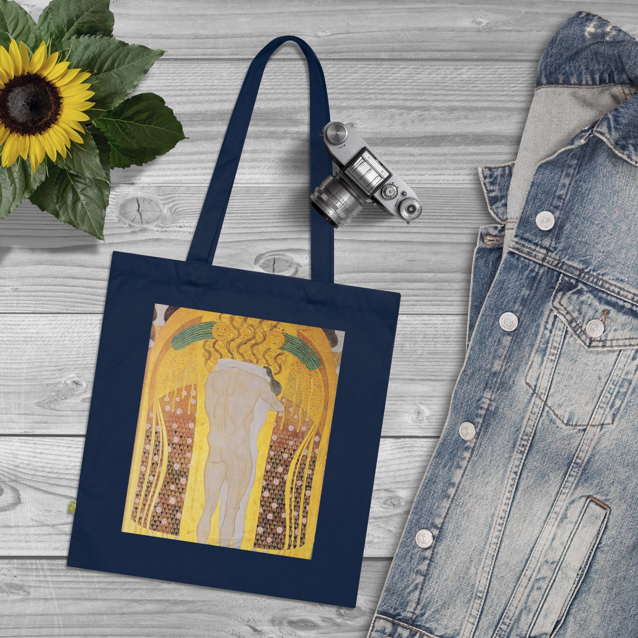 Created during the early 1900s in Vienna, Klimt’s art emerged amid a cultural renaissance that reshaped European aesthetics and thought. Featuring Diesen Kuss der ganzen Welt by Gustav Klimt, printed on a durable everyday canvas tote. Art with a story that predates everything in your home.